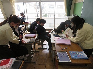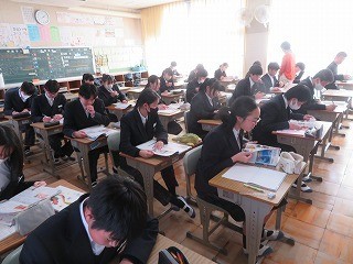 授業の様子です。 公開日 2026/02/10 更新日 2026/02/10 学校のようす 2月10日(火)の5時間目の様子です。数学で教え合う姿、先生に教えてもらう姿が見られた学級やテストを受けている学級など様々な授業がありました。どの学級の生徒も一生懸命学んでいました。 +1