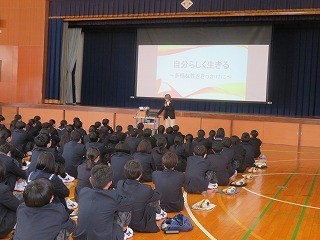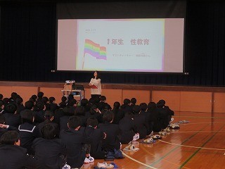 1年生で性教育を行いました 公開日 2026/02/18 更新日 2026/02/18 学校のようす 2月18日(水)の6時間目には1年生で性教育が行われました。初めに養護教諭の先生から「お互いを理解しあおう」をテーマにお話があり、講師の先生の紹介がありました。次に、講師の先生からLBGTQについて、性の多様性、理解、アウティングなどのお話を通して、周りの人だけでなく自分の性も多様性の一員としての在り方について考える貴重な時間となりました。 +1
