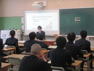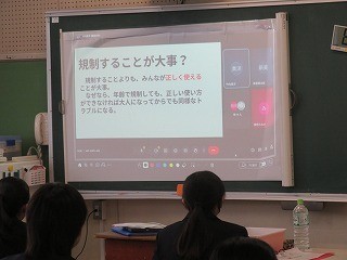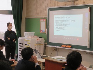 2月27日(金)の朝の学年タイムの時間には、生徒指導主事から全校一斉に情報モラルについてのお話がありました。近年、全国的にSNSによるトラブルが起こっており、本校の生徒にも改めて確認をしました。子どもへの精神的悪影響、サイバーいじめ、過激なコンテンツへの接触などの懸念から、法律としてSNSの年齢規制を行っている国があることや規制することよりも正しい使えるようにすることが大切であるとの話がありました。また、中学生のSNSによるトラブルが増加していることや人を誹謗中傷することで犯罪となる可能性が高いことなどの話もありました。最後に、SNSを利用するにあたり、「正しく使えないならば使わない」「迷ったときは投稿しない」「拡散・保存をしない」「一人で抱え込まない」「相談する」の5つが確認されました。グループをつくりその中で語られている内容を把握することは難しいことです。青山中学校の生徒が加害者や被害者にならないように、ご家庭においてお子様のSNSの使い方にご留意いただけるようご協力お願いいたします。