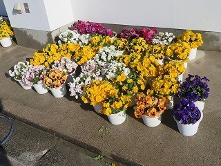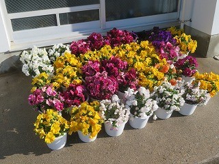 3月10日(火)の南館校舎の前です。パンジーが満開です。とてもきれいなので思わず撮ってしまいました。