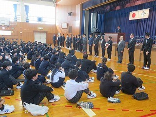 赴任式・担任発表がありました 公開日 2026/04/08 更新日 2026/04/08 学校のようす 4月8日(水)には、赴任式が行われました。校長先生より青山中学校を去られた方々と本年度みえた方々の紹介がありました。新しく青山中学校にみえた方々から挨拶がありました。赴任式の後には担任の発表がありました。教室に戻った後には入学式の準備とクラスの発表がありました。いよいよ明日の始業式から新学年が始まります。充実した1年になることを願っています。 +7