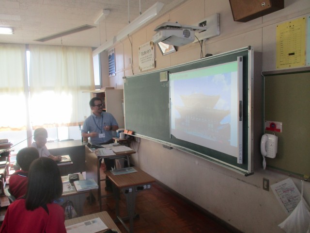 久米先生が成中の先生方の代表として、社会科の授業をされました。