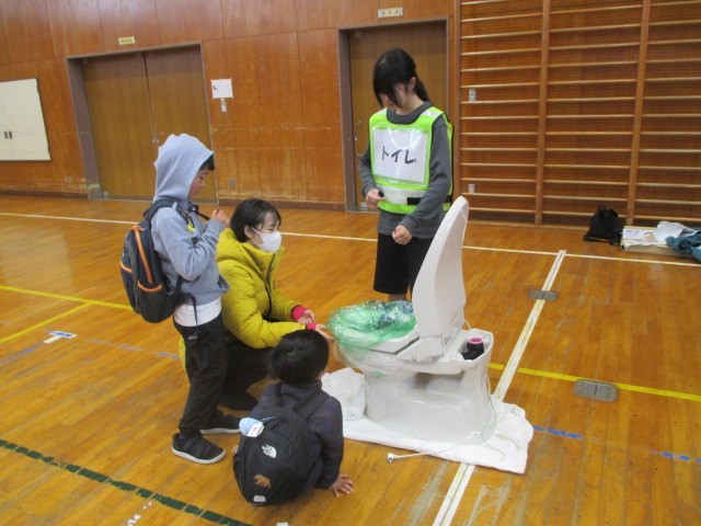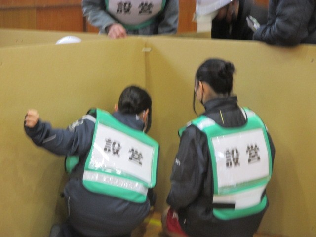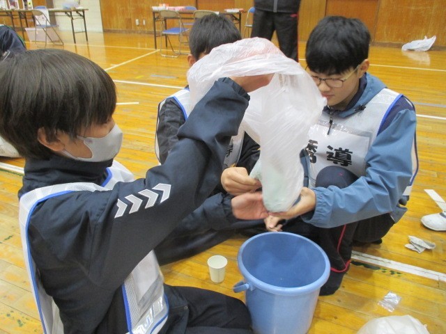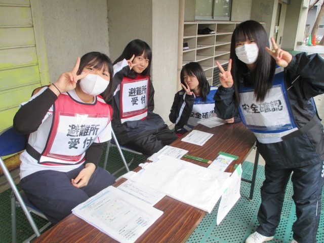 宮池小学校で、成岩中学校区避難訓練が行なわれ、中学生ボランティアも参加しました。避難所設営、誘導、受付、トイレ設置など、あらゆることを地域の方と協力して行いました。雨で人数も少なめでしたが、とても有意義な訓練となりました。反省では、ある生徒が「今日の訓練をもっと多くの中学生に参加してもらえると良い亅と意見を言っていました。皆が地域の一員として自覚を持った行動ができるようになるとよいですね。