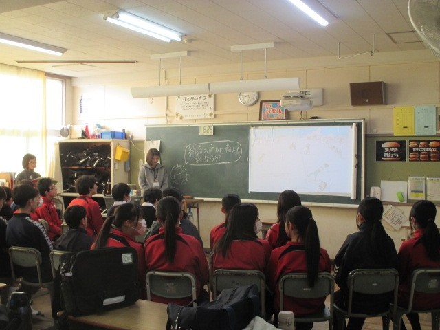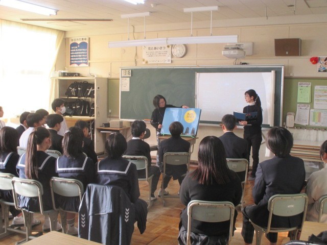 読み聞かせボランティアの皆様に、2年生の読み聞かせをしていただきました。どの生徒も真剣に聞いていました。以前読んだことのある話だったが、読み聞かせボランティアの方のお話を聞いているうちに、その世界に引き込まれていったと感想を述べていました。3学期は1年生と特別支援の生徒に読み聞かせをしていただく予定です。