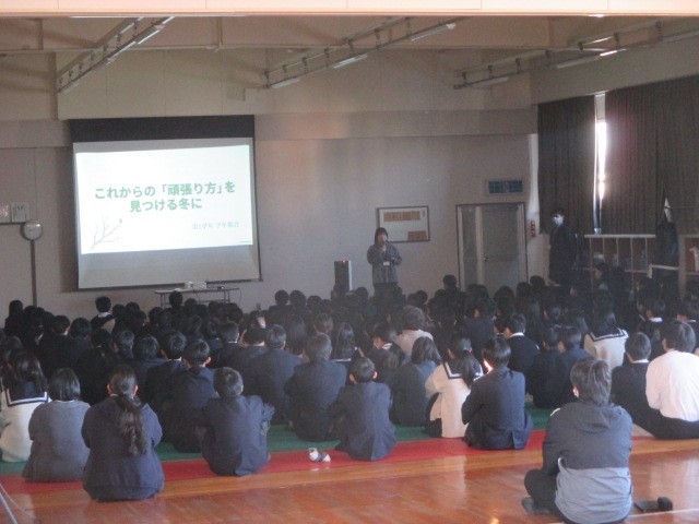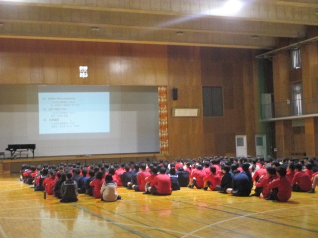 2学期も残り2日となりました。それぞれ学年集会が開かれました。1時間目は1年生、2時間目は3年生、3時間目は2年生が行いました。