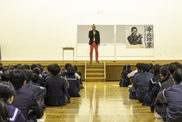 命の漢字の成り立ちから始まり、質問コーナー、これからの人生に向かっての熱いメッセージ。1つ1つの言葉が、生徒の心に響いたと思います。
