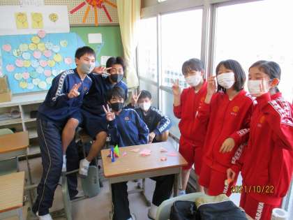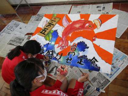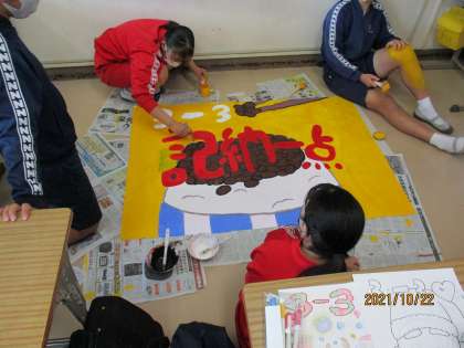 3年生は、教室で応援旗を作成したり、景品を作成したりしていました。