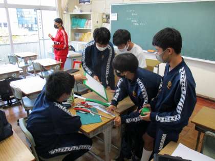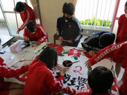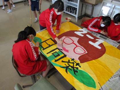 2年生も学級旗を作成したり学級企画の小道具を作成したりしていました。