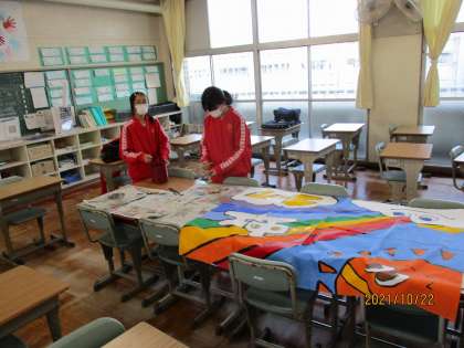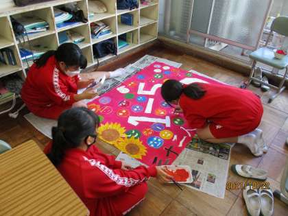 1年生も学級旗などを作っていました。私が1年生のフロアを回ったときには活動終了5分前でしたが、自分たちで声をかけ合って片付け始めていました。作ったり練習したりするだけでなく、片付けや時間を守って行動しようとする姿勢は今後も大切にしたいものです。