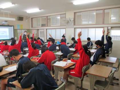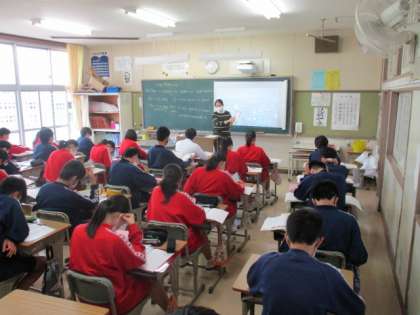3年生の英語の授業では、関係代名詞について学習していました。問題演習の際には、多くの生徒が意欲的に挙手していまいた。