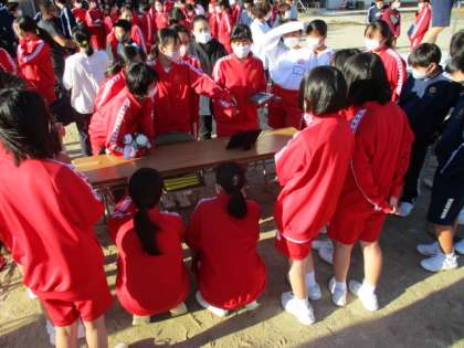 今年度も生徒主体で活動しています。「大玉送り 〜成中の果てまでイッテ球〜」は学年対抗で行います。総合練習後には、放送委員が打ち合わせをしていました。また、体育祭実行委員が器具の片付けをしていました。こうした動きが縁の下の力持ちとして支えてくれています。