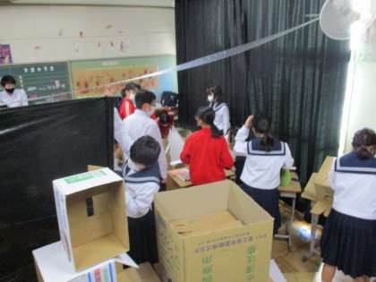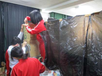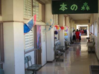 8時頃の様子です。3年生の廊下は風船や傘など華やかに飾り付けられています。1年生の教室では、昨日の予定通り?早速飾り付けの続きをがんばっていました。