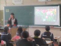 国語の授業では、タブレット端末を利用して漢字の書き取りの学習をしていました。